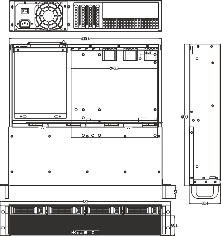 크기(W x H x D) | 482(W) Ⅹ 88.4(H) Ⅹ 400(D)mm | |
